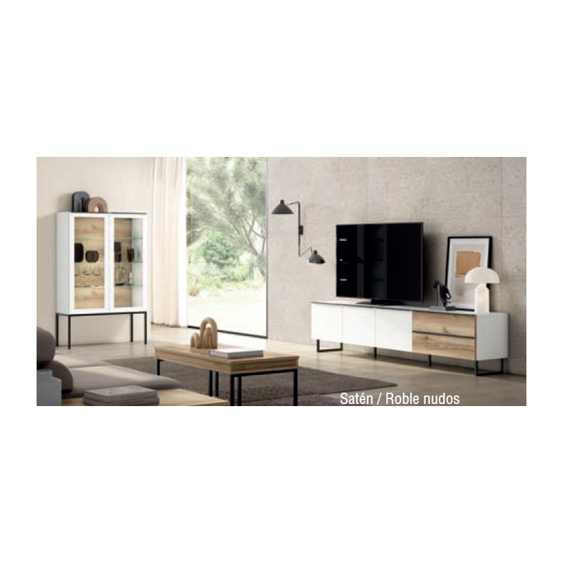 COMPOSICIÓN TV 240CM PATA METAL Y VITRINA BANCADA 100CM