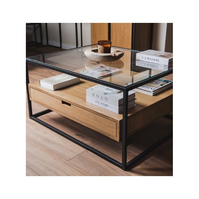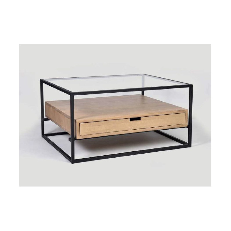 Perfil metálico 20mm. Tapa de cristal 6mm. Cajones fabricados en madera maciza de pino.
