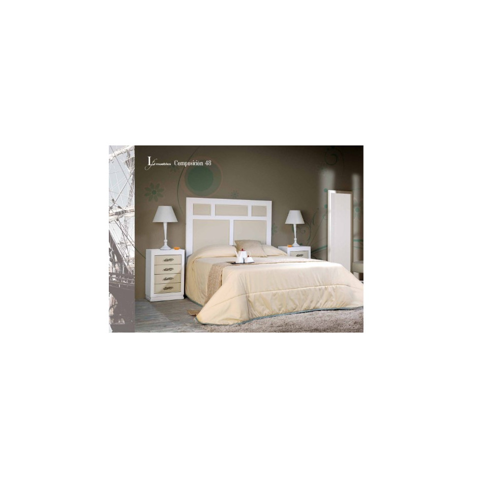 DORMITORIO COMPUESTO POR CABECERO PARA COLCHON 135CM, 2 MESITAS, CÓMODA Y MARCO ESPEJO.