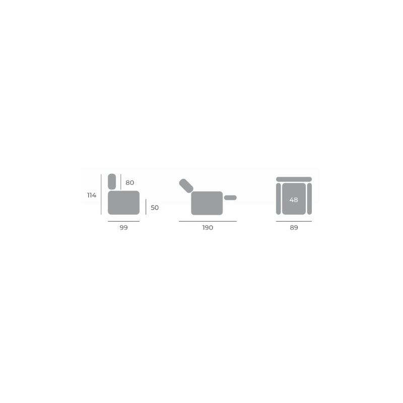 Ancho asiento 48cm. Alto asiento 50cm Mecanismo abierto 190cm.