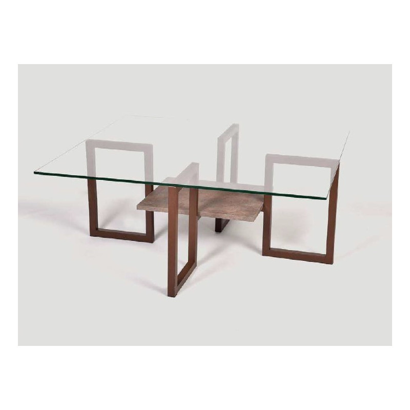 Perfil metálico 30mm. Cristal 10mm. Tapa central melamina.