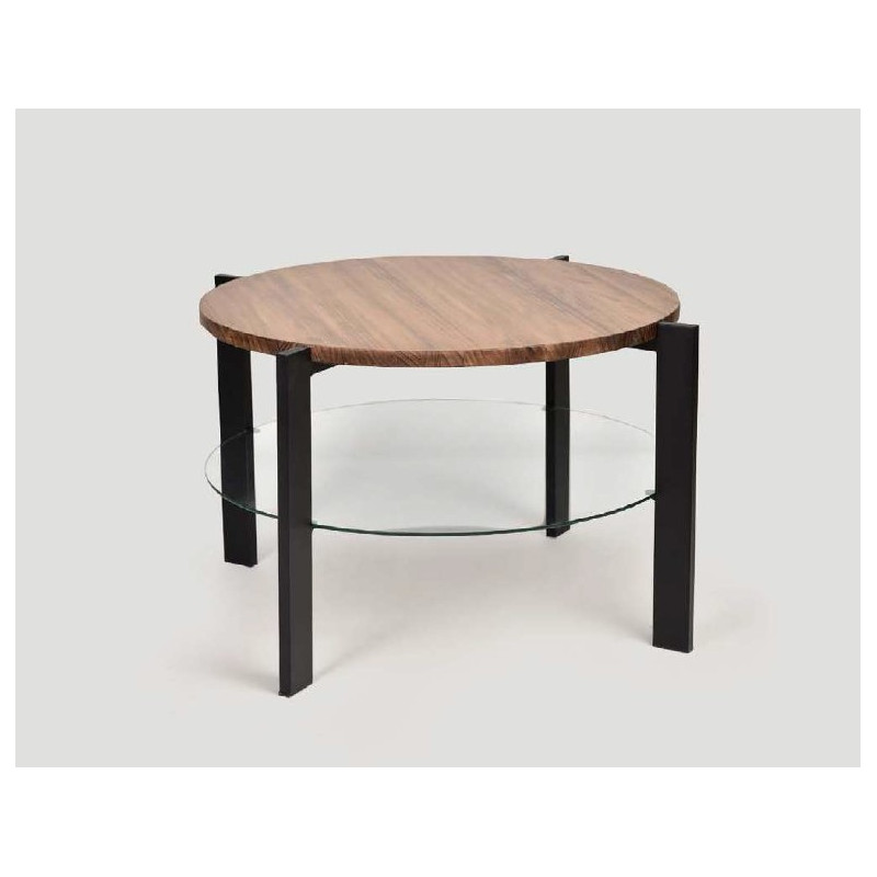 Perfil metálico 50x20mm. Tapa de madera de pino de 30mm. Cristal de 6mm.