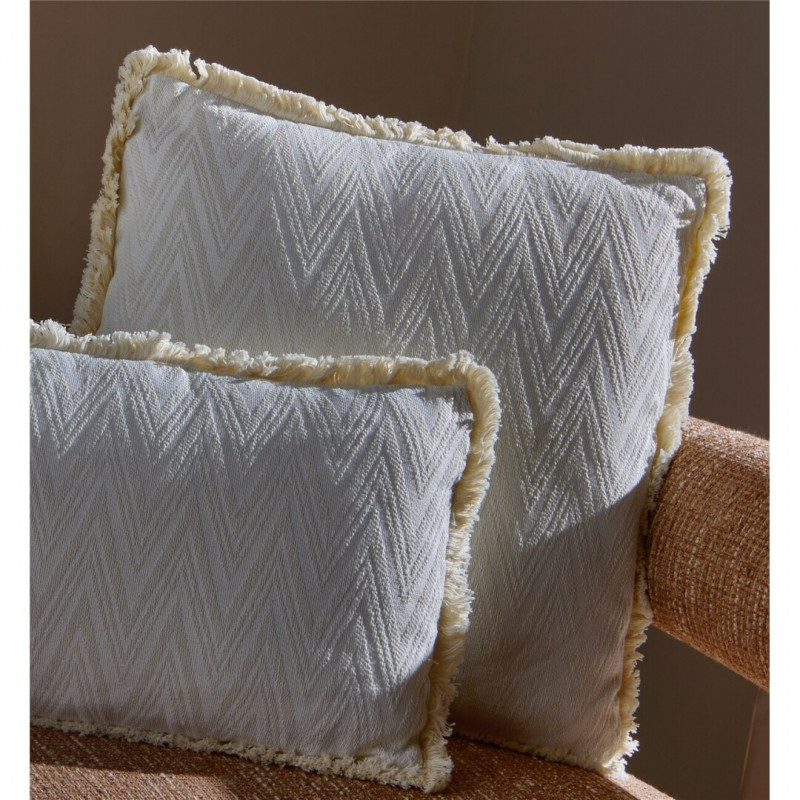 COJIN CUADRADO BEIGE CON FLECOS