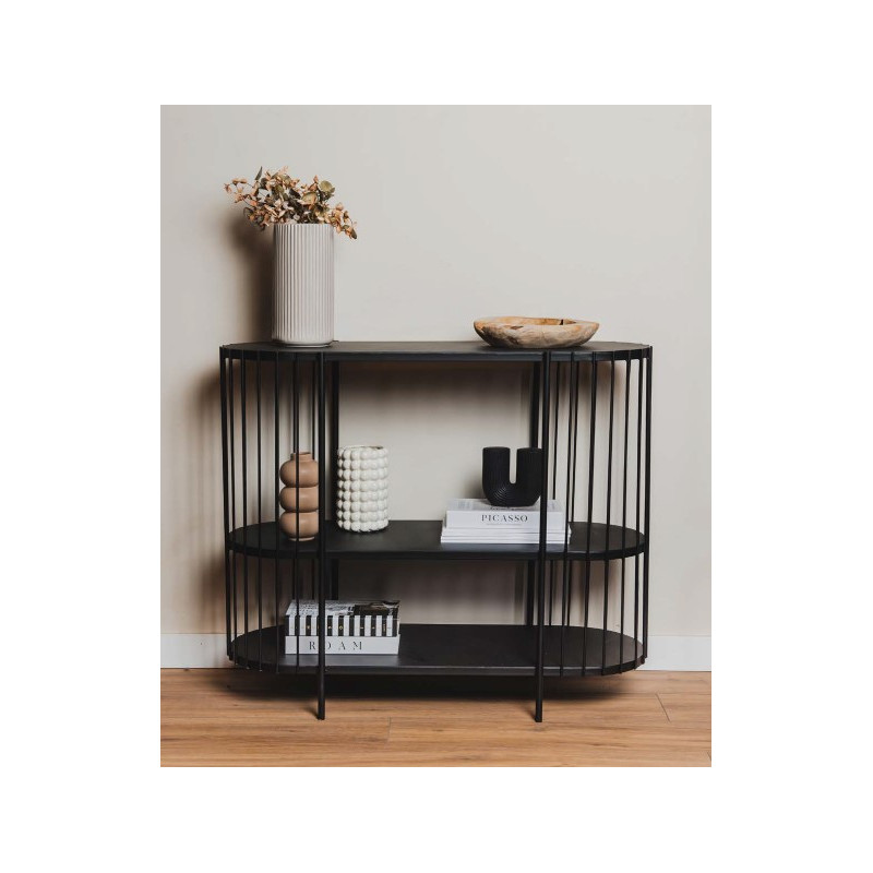 Perfil metálico redondo de 16mm. Estantes en chapa metálica.