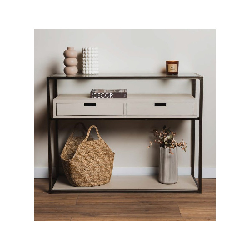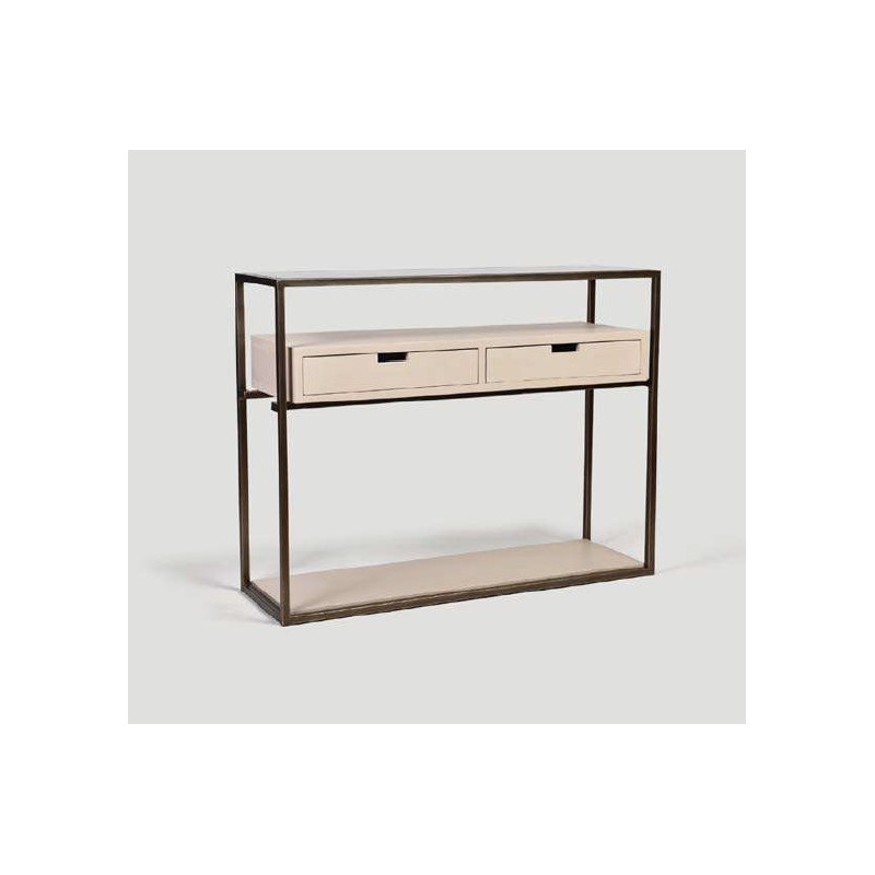 Perfil metálico 20mm y cristal de 6mm. Cajonera fabricada en madera de pino.