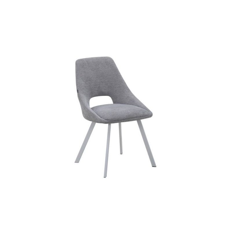 Silla tapizada en tela, con asiento y respaldo acolchados y patas metálicas.