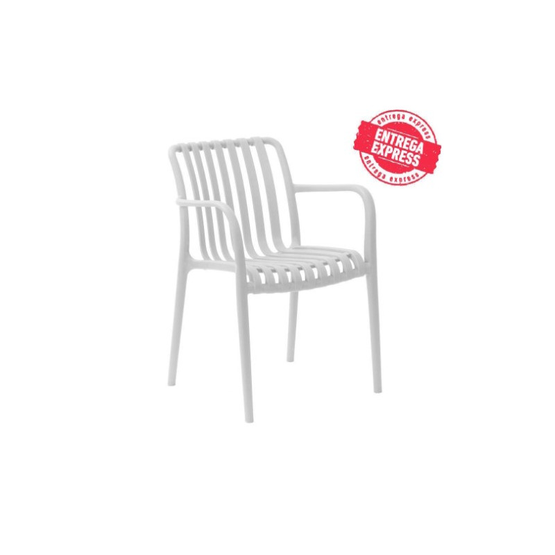 Silla fabricada en polipropileno en color blanco o gris antracita. Admite uso exterior.