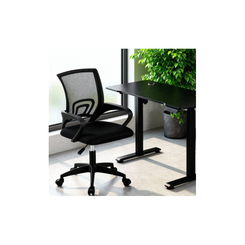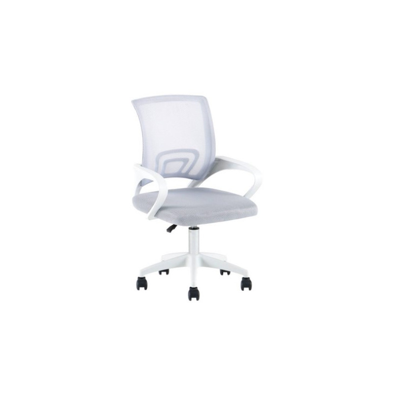 Silla de oficina con respaldo ergonómico, tapizada en tejido 3D. Dispone de refuerzo lumbar, estructura de polipropileno, mecanismo hidráulico elevador, sistema de balanceo y brazos. Se sirve desmontada en un bulto.